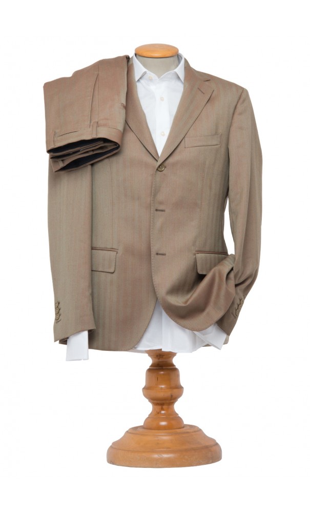 Abito ad 1 petto in lana e kid Mohair, motivo spigato.